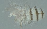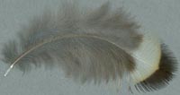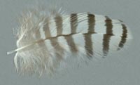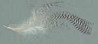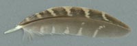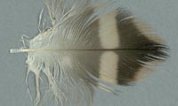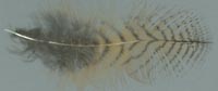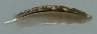 Bei diesen Federn ist die Schwankung in den Maßen besonders groß, so dass die Einordnung nur als Anhaltspunkt dienen kann. In besonderen Fällen können sie zusätzlich bei anderen Merkmalen zu finden sein. Der Übergang zur charakteristischen Fleckung ist fließend. |