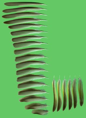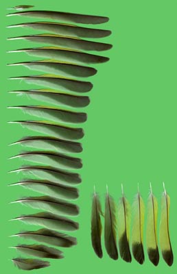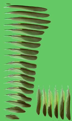 Beim Weibchen sind die Af der Schwingen graugrünlich, das Steuer hat weniger