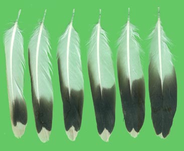 wird von einem weißen Spitzenfleck abgeschlossen. Die Federmaße sind