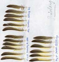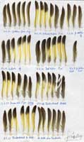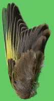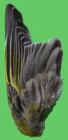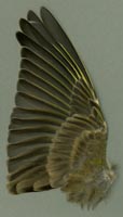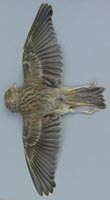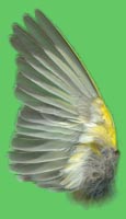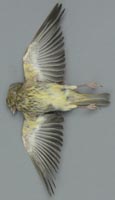 Spitze und einen stärker abgesetzten Außensaum. Kennzeichnend für das M sind die grauen inneren Ad (W: graubraun), das Gelb der Af von H6-8 (reicht bis an den Schaft) und die If der S4-6 (Gelb reicht länger bis an den Schaft). Einen Vergleich zum Erlenzeisig finden Sie hier. Verwechslungsmöglichkeit besteht allenfalls mit dem deutlich kleineren Erlenzeisig und entfernt mit dem ebenfalls kleineren Girlitz. |