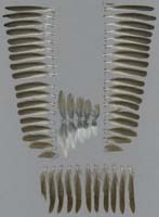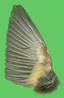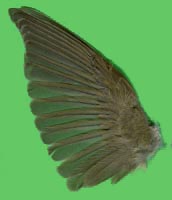 intaktes, nicht abgenutztes Gefieder. Eine Geschlechtsbestimmung anhand des Gefieders ist nicht möglich. Kennzeichnend im Vergleich zur Mönchsgrasmücke sind die breiteren weißlichen Säume auf den If der Schwingen. Steuer kürzer als bei der Mönchsgrasmücke, Federn weniger zugespitzt. Vergleiche zu Dorn-, Mönchs-, Sperber- und Klappergrasmücke finden Sie hier. Verwechslungsmöglichkeiten bestehen besonders mit Mönchsgrasmücke, weniger mit Klapper- und Dorngrasmücke, deren Maße kleiner sind und mit Sperbergrasmücke, deren Maße größer sind. |