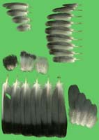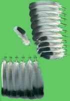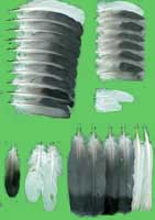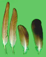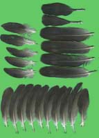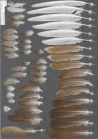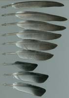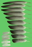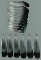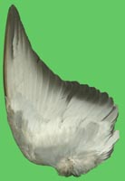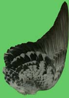 Gefangenschaftsflüchtlinge. Kennzeichnend ist das fehlende Aufhellungsband unter der dunklen Endbinde des S (besonders deutlich von der US zu sehen). Siehe auch das Vergleichsbild. Die Federn sind in Größe und Färbung sehr variabel (auch unsymmetrisch). Verwechslungsmöglichkeit besteht besonders mit zur gleichen Art gehörenden Felsentauben, mit Hohltauben, die aber kleinere Federn besitzen, und Ringeltauben, deren Federn in der Regel größer sind. |
