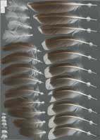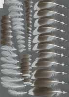 etwa vier Jahren ihr Alterskleid anlegt. Kennzeichnend für juv. im Vergleich zur juv. Silbermöwe ist der fehlende helle Fleck auf der H4. Den Vergleich der S-Zeichnung mit jungen Großmöwen finden Sie hier. Den Vergleich der Zeichnung äußerer HS verschiedener ad. Möwen finden Sie hier. Verwechslungsmöglichkeit besteht vor allem mit der allerdings signifikant größeren Mantelmöwe. Juv Großmöwen sind leicht zu verwechseln. |