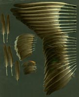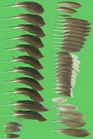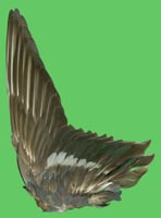 beim W. Juv. sind an den V-förmigen Einkerbungen der S zu erkennen. Verwechslungsmöglichkeiten bestehen zu Pfeif- und Spießente mit matt grünem Spiegel sowie Schnatterente mit grauem Spiegel. Einen Vergleich der Schwingen einiger Gründelenten finden Sie hier. Einen Vergleich der Steuer einiger Gründelenten finden Sie hier. |
