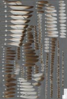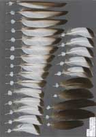 Einkerbungen der S zu erkennen (M: H6 überwiegend weiß bis auf schwarze Spitze, W: H6 überwiegend grau, weniger Kontrast zu dunkler Spitze). Bei ad. M und W sind Mantel und Schu an der Spitze im PK stärker gesprenkelt, im SK dagegen kaum. Kennzeichnend sind neben den etwas kleineren Federmaßen als die der Reiher- und Bergente Schwingen mit mehr Weiß. Verwechslungsmöglichkeiten bestehen zu Reiher- und Bergente. |