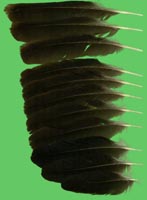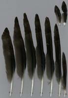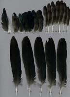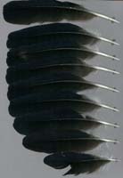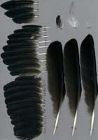 beiliegenden grauen Kleinfedern. Das Großgefieder ist nicht sicher unterscheidbar. Eine Geschlechtsbestimmung anhand des Gefieders ist nicht möglich. Verwechslungsmöglichkeiten bestehen mit anderen schwarzen Rabenvögeln wie Dohle und Alpendohle, bei denen die Maße deutlich kleiner sind, aber auch mit Alpenkrähe, Saatkrähe, Rabenkrähe und Kolkrabe, bei denen es Maßüberschneidungen gibt. |