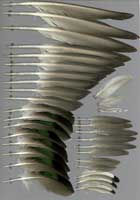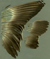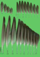 A, die grauschwarz mit grünmetallischen Schimmer sind. Geschlecht und Alter sind besonders anhand der großen Armdecken feststellbar: weiße Af -> M , geringe dunkle Spitze -> W (jeweils je ausgedehnter, desto älter) Juv. Tiere haben v-förmig gekerbte Steuerfedern. Verwechslungsmöglichkeit besteht besonders mit der Schnatterente, deren Spiegel aber keinen grünen Schimmer hat, den die Pfeifente besitzt. Einen Vergleich der Schwingen einiger Gründelenten finden Sie hier. Einen Vergleich der Steuer einiger Gründelenten finden Sie hier. |
