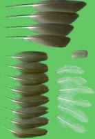Federmaße. A, S und Ad weisen bei juv. helle Endsäume auf. Verwechslungsmöglichkeiten bestehen farblich mit den anderen Meergänsen (Kanada-, Weißwangen-), deren Federmaße aber praktisch signifikant anders sind. |
