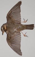 ein schmaler heller Saum, der nie zu einem Schaftstrich ausgezogen ist. Eine Geschlechtsbestimmung ist anhand des Gefieders nicht möglich. Kennzeichnend im Vergleich zur Singdrossel ist die mehr graubraune Färbung der Federn. Die UFd sind weinrot. Die Unterschiede zur Singdrossel finden Sie hier. Verwechslungsmöglichkeiten bestehen mit der Singdrossel. |