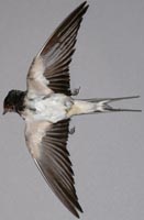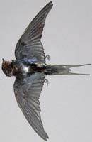 sind der fehlende oder nur schwache Metallschimmer und S6<76 (i.d.R.). Bei M ist die S6 > 93mm (Schwanzgabeltiefe >51mm), bei W die S6 < 112mm (Schwanzgabeltiefe <58mm) (i.d.R.). M im 2. Jahr haben kürzere Schwänze, weshalb es zu Überschneidungen mit W kommen kann. Die weißen Abzeichen auf den Schwänzen sind bei W weniger ausgeprägt und fehlen auf der S2 teilweise. Im Vergleich zur Mehlschwalbe ist ein blauer Metallschimmer auf den H + A vorhanden. Die Unterschiede zu Mehl-, Uferschwalbe und Mauersegler finden Sie hier. Verwechslungsmöglichkeiten bestehen oberflächlich mit den Schwingen der anderen Schwalben. |