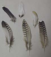 Leider nur zwei Steuerfedern und zwei Armschwingen links unten + Kleinfedern, die möglicherweise der Unterscheidung dienen können.