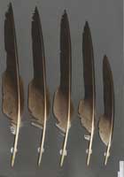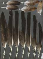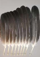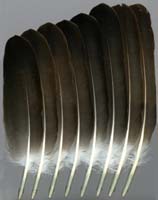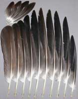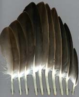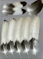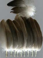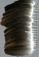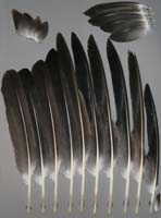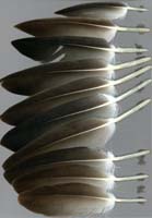 unterschieden werden. Kennzeichnend für das Alter ist vor allem der S, der innerhalb von etwa fünf bis sechs Jahren von dunkelbraun nach weiß mit brauner Basis wechselt. Die Zwischenkleider haben unterschiedliche Weißanteile. Verwechslungsmöglichkeit besteht bei kleineren Schwingen mit denen der Graugans oder der Kanadagans. |