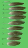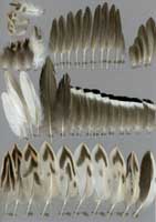 aufwärts gekrümmt ("Erpellocke"). Juv. sind an den V-förmigen Einkerbungen der S zu erkennen. Das weiß-schwarze Endband der Ad reicht im SK bei den Erpeln bis zur 12. Decke, bei den W mind. bis zur 13. Verwechslungsmöglichkeiten bestehen mit Schnatter-, Spieß- und Löffelente, nur der blaue Spiegel ist eindeutig. Einen Vergleich der Schwingen einiger Gründelenten finden Sie hier. Einen Vergleich der Steuer einiger Gründelenten finden Sie hier. |