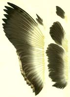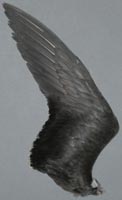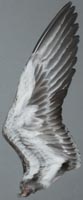 wellenförmige Abgrenzung schwarz/weiß auf den A. Alters- und Geschlechtsunterschiede sind anhand des Großgefieders schwer festzumachen. Verwechslungsmöglichkeit besteht mit dem Tordalk und mit der Gryllteiste. Der Krabbentaucher ist viel kleiner. |