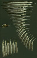 dunkles Band, gefolgt von einem hellen Endsaum. Kennzeichnend im Vergleich zur Weißflügelseeschwalbe ist der unscharf abgesetzte grauweiße Keil auf der H10. Verwechslungsmöglichkeit besteht mit Weißflügel- und Weißbartseeschwalbe. |