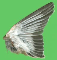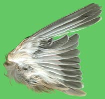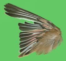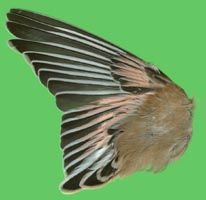 für M sind die Schirmfedern. Diese sind beim M im oberen Teil schwarz, schmal hell gesäumt. Beim W sind diese graubraun, hellbräunlich gesäumt. |