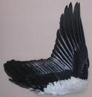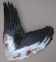 silbergrau bepudert (ad.), bei juv. grauweiß. Es sind keine signifikanten Unterschiede am Großgefieder der Geschlechter und zwischen den Jahreskleidern bekannt. Verwechslungsmöglichkeit besteht zum Schwarzstorch, dessen Schwingen dunkler, etwas kleiner und ohne weiße Basis sind. |